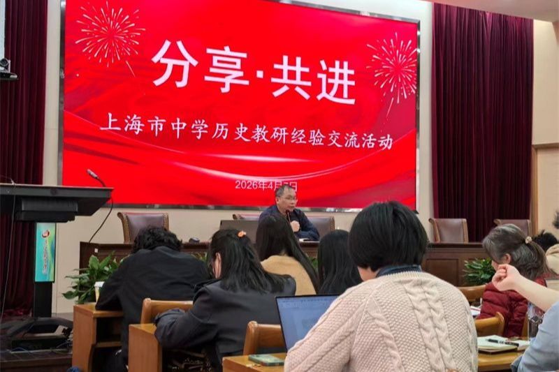 2026年4月7日下午,上海市教师教育学院组织的“分享·共进”教研经验交流活动(第八场)在上海市普陀区教育学院举行,来自上海市各区初、高中的历史骨干教师与会交流学习。在本次市级教研活动中,本部历史组顾琼敏老师进行了题为“结构·事例·史观——选必1‘法律与教化’单元的教学建构”的经验分享。