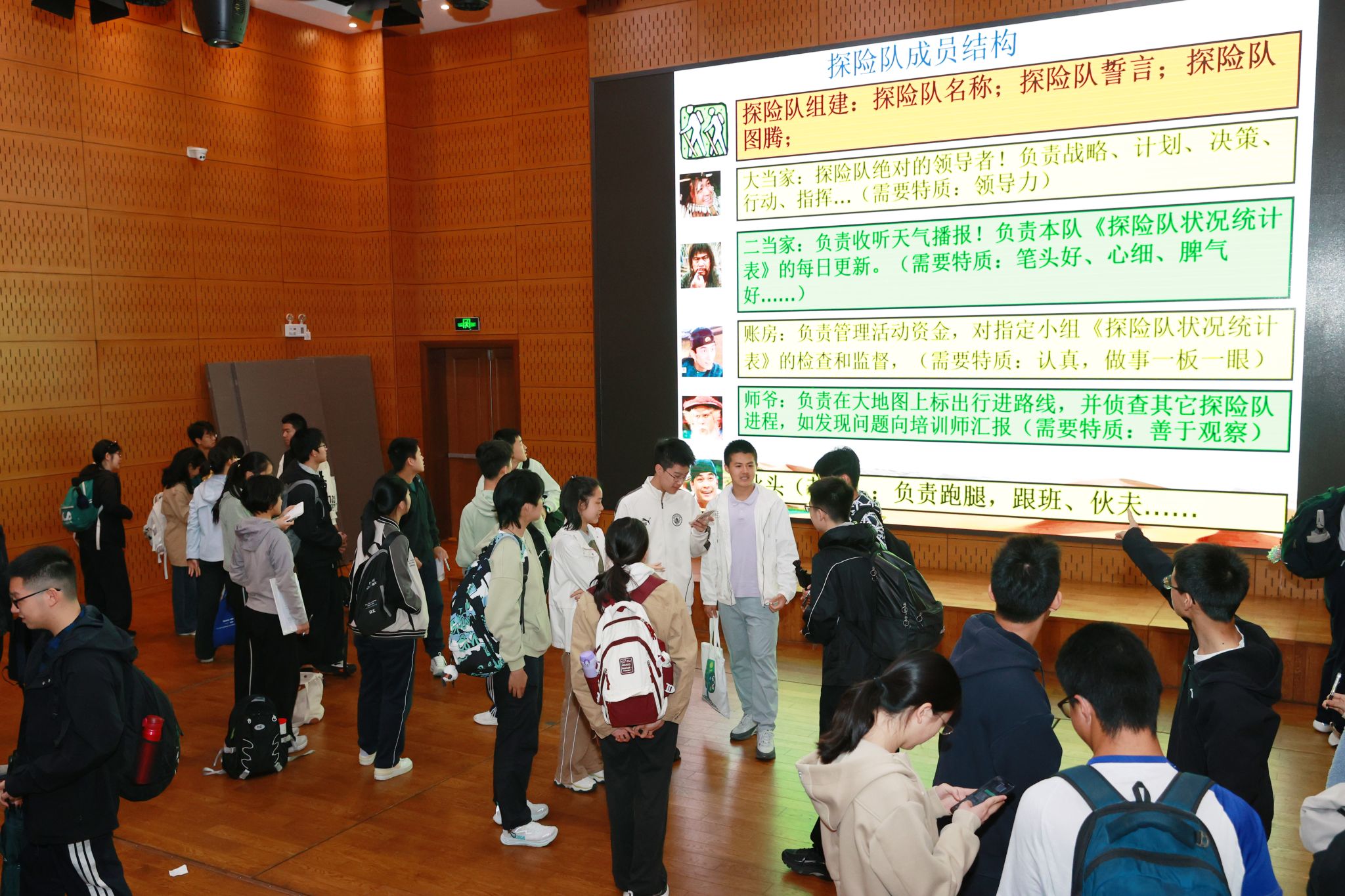 活动结束后,学生会成员倪一宸对LO成员开展48小时生存训练组织者培训。他先对三天两晚的活动总安排进行了介绍,随后,针对可能出现的状况,为十个小组设置了十道不同情境下的思考题。同学们激烈讨论处置情况的策略,出色回答了问题,对48小时生存训练的活动组织有了更多了解。