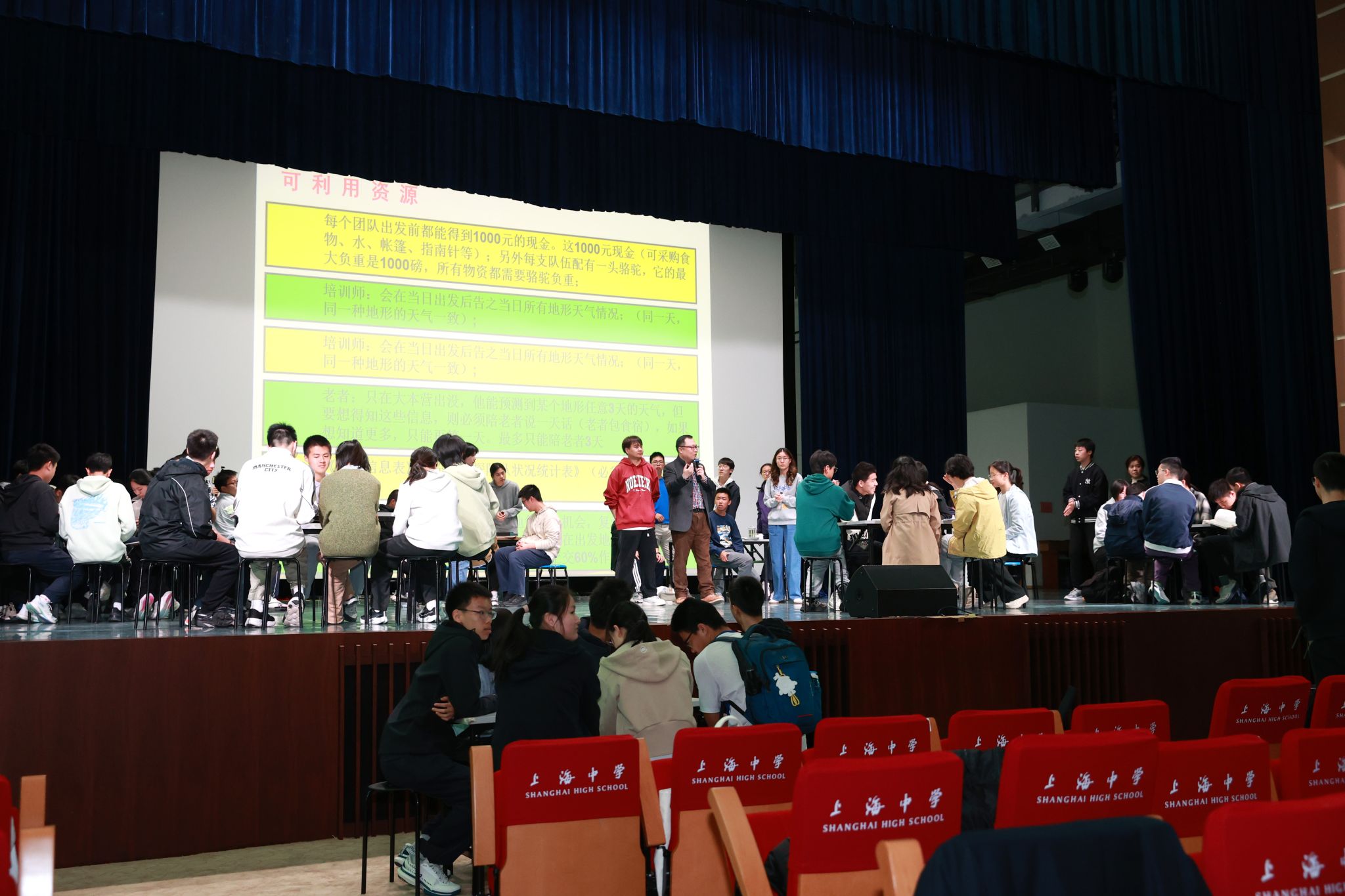 LO课程拓展训练是根据LO课程的设定目标,为上海中学LO课程学员量身定制的活动,帮助他们能更好地在实践中体验理论学习过程中接触到的知识,对领导力有一个更加深入的认识。能相聚在樱花盛开的校园里已经是件幸事,如果能在“合作之下,横穿沙漠,勇闯皇陵,探索金山,采得金矿”,那更令人欣喜。《沙漠掘金》(Gold of the Desert King)是一种体验式培训课程,参训学员需组成探险队,利用预备金采购物资,在25天行程中穿越沙漠、村庄等场景,应对天气变化并管理骆驼负重、帐篷等资源限制。活动中可通过绿洲补充水源或向神秘老人获取信息,但需消耗额外资源。该课程通过模拟掘金任务,帮助学员提升目标设定、资源配置及团队协作能力,强调以效果为导向制定计划的重要性。