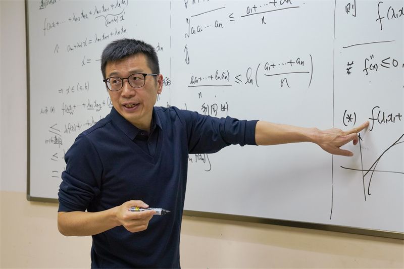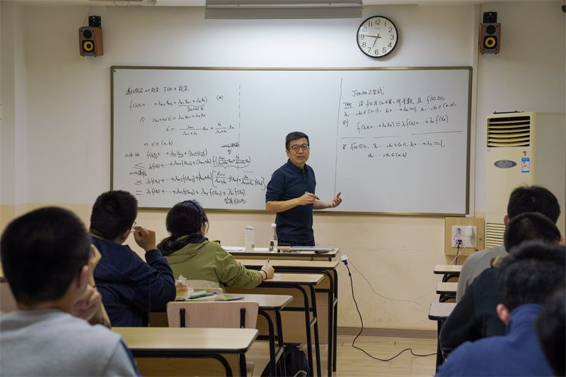 梁振国教授先带领同学们复习了单调函数、凹凸函数的相关知识。随后,梁教授运用数学归纳法,严谨地证明了琴生不等式——这是数学分析领域中的一个基本不等式。梁教授进一步指出,通过琴生不等式,人们可以推导出诸多其他常用不等式,平均值不等式便是其中之一。