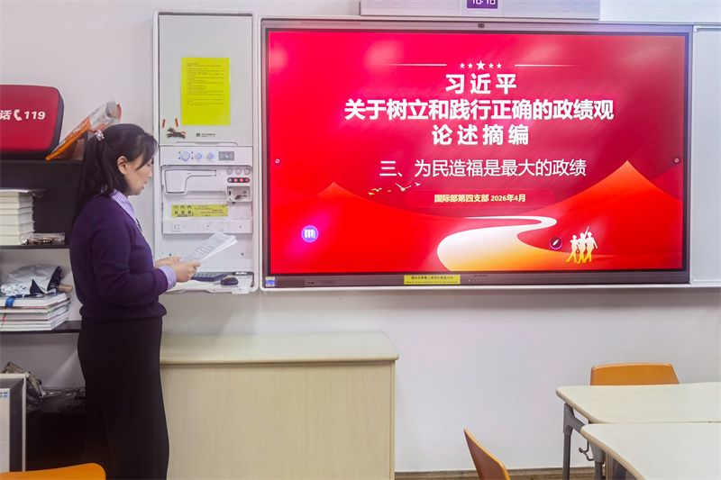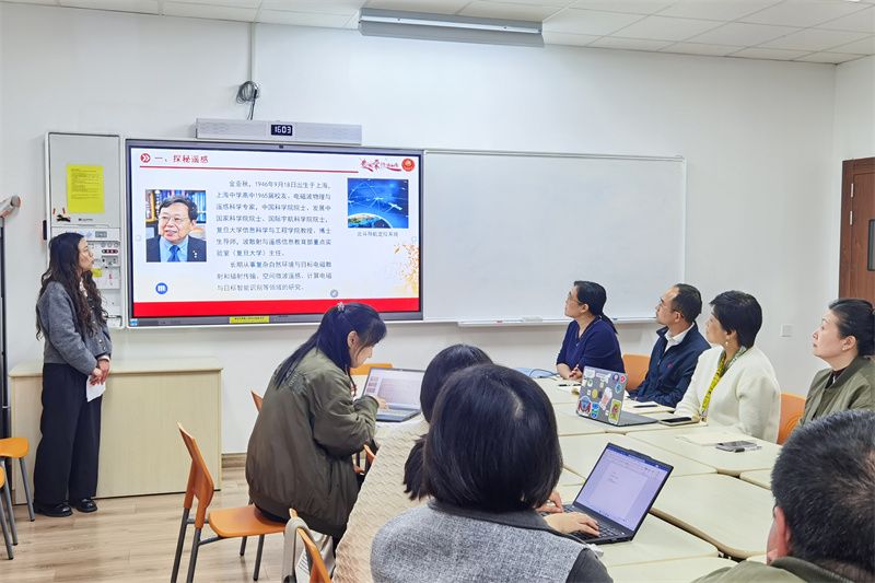 4月14日下午,国际部第四支部全体党员齐聚先棉堂209教室,开展四月份的主题党日活动。活动以“树立和践行正确政绩观学习教育”为主题,分为三个部分进行,分别是本部张佳鸿老师带来的“爱国荣校宣传——金亚秋院士”、支委委员吴老师带领大家学习“为民造福是最大政绩”以及刘书记带领大家学习“大力发展全过程人民民主”。