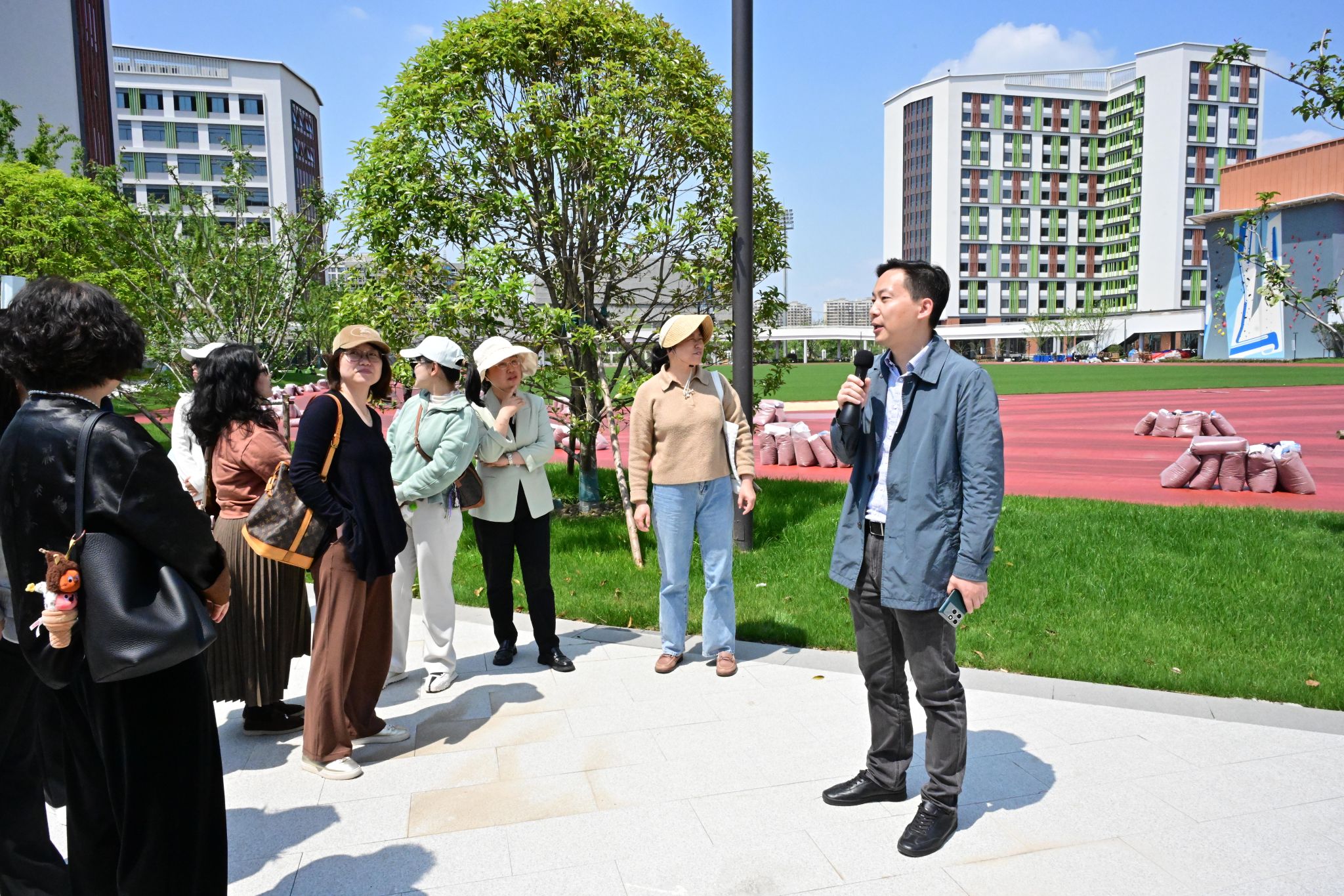 在参观的尾声,党委委员刘炼老师和大家座谈交流之际指出,奉贤校区从一片绿地变为新楼林立、设施完善的现代化校园,是全体建设者与管理者践行正确政绩观、埋头苦干、攻坚克难的真实写照。他强调,奉贤校区的建成启用,为上中注入了全新活力,不仅是学校“一体四翼”格局的全面打开,更为师生搭建了更大的发展舞台。优质的师资力量、完善的硬件支撑、崭新的育人环境,必将推动教育教学质量再上新台阶。