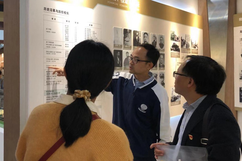 党课活动结束后,马峰校长和刘琴书记带领弘梅小学的党员老师们参观我校的校史陈列室。马校长亲自为老师们讲解上海中学的前世今生以及校园目前和未来的规划。弘梅小学的老师们在校史陈列室流连忘返。上海中学国际部第四支部与闵行区民办弘梅小学支部的“学党史、讲党史”联合活动圆满成功。