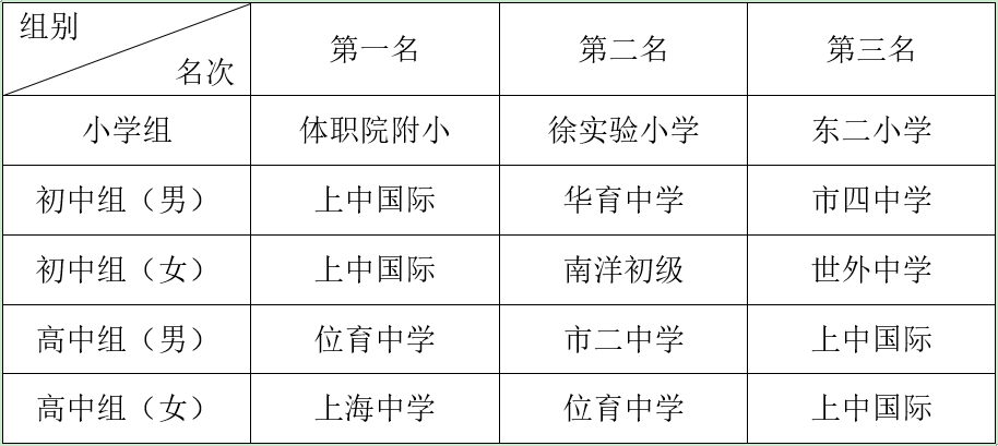 通过激烈的角逐,本次比赛各组别获得前三名的学校分别是: